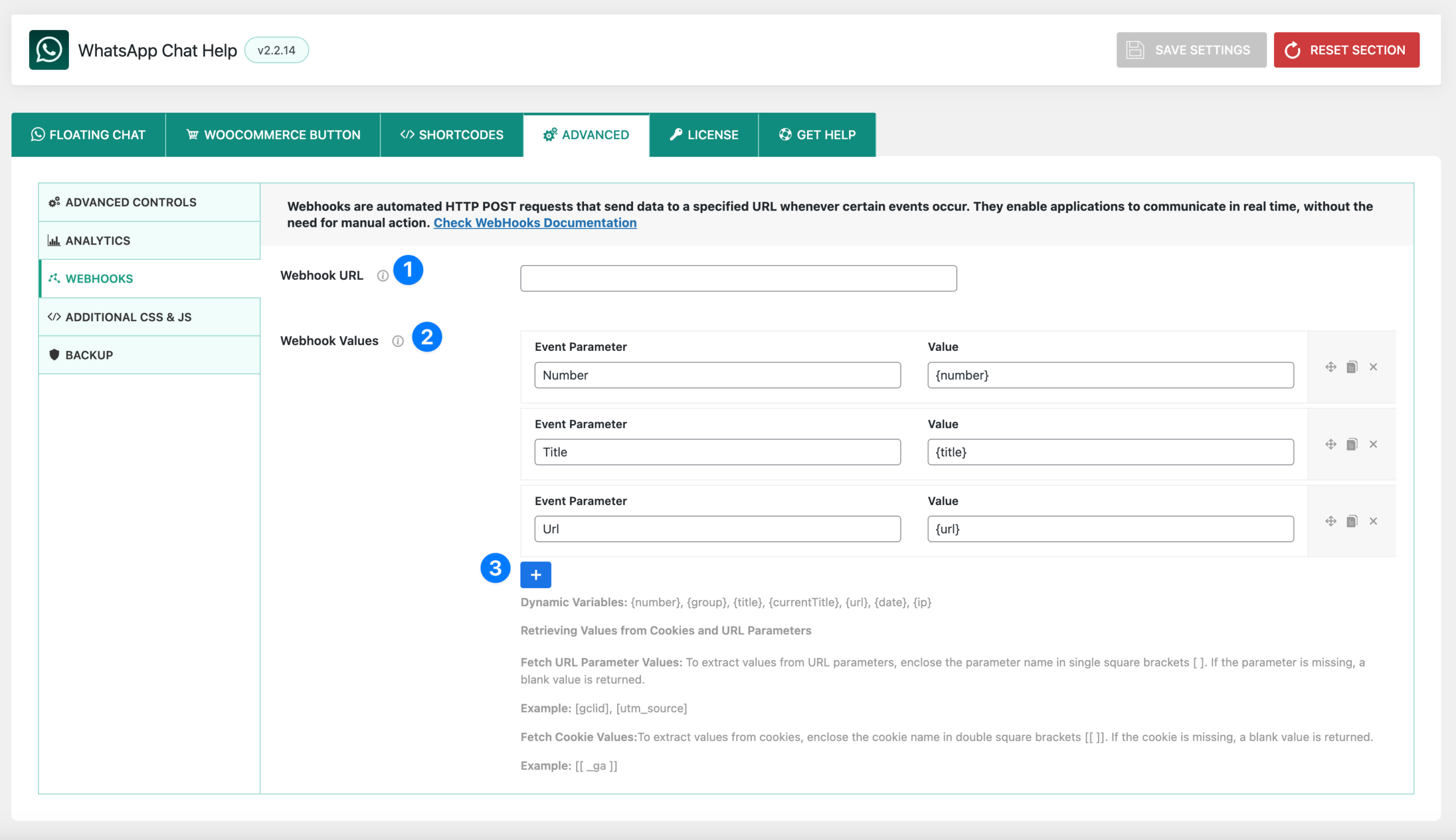 1. Go to WhatsApp Chat Help → Advanced → Webhooks.